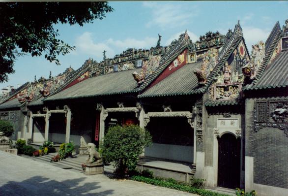 陳家祠堂建于光緒十六年----二十年間(1890-1894),由黎巨林設計,是從前姓陳的廣州人用以供奉祖先的廟寺。其整個建筑巧奪天工,主要以其“三雕、三塑、一鑄鐵”而著稱,號稱“百粵冠祠”。