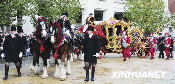 11月8日,在英國首都倫敦,新當(dāng)選的金融城市長的金馬車在巡游。新華社記者馬建國攝
