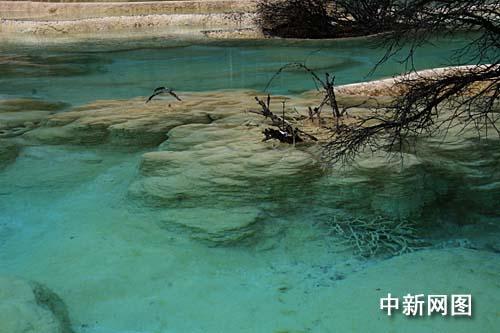 整個山谷幾乎全被乳黃色的碳酸鈣質(zhì)覆蓋,從高處看去,宛若一條從岷山雪峰飛騰而下的黃龍,景區(qū)由此得名。一層層的碳酸鈣形成層層疊疊的梯狀湖泊、池沼,水色因水底沉積物和山色的千變?nèi)f化,而呈黃、綠、淺藍、蔚藍等顏色,是名副其實的“人間瑤池”。