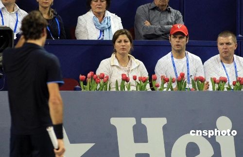費(fèi)德勒的女友米爾卡(前排右三)到上海網(wǎng)球大師杯現(xiàn)場為這位瑞典“天王”加油助陣。