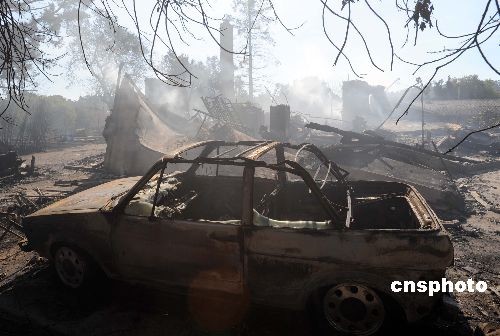 圖為蒙特塞托市一處被焚毀的房屋廢墟和汽車。中新社發(fā) 張煒 攝