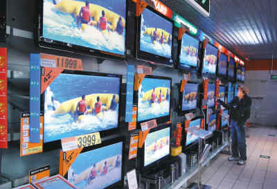 如今的電器商場里,各式各樣的超薄電視隨處可見。人民日報記者 李石營攝