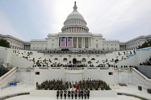 按照典禮程序,奧巴馬20日就將發(fā)表就職演說,闡述未來四年的治國方略和預定目標。隨后,他將坐上總統(tǒng)座駕,在賓法凡尼亞大道上接受群眾擁戴。目前國會山西側的就職典禮觀禮臺已搭建就緒。