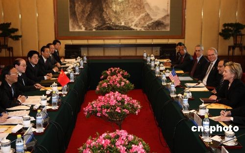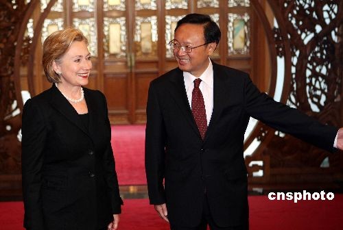 2月21日上午,中國外交部部長楊潔篪與美國新任國務卿希拉里·克林頓在北京釣魚臺國賓館舉行會談。中新社發(fā) 任晨鳴 攝