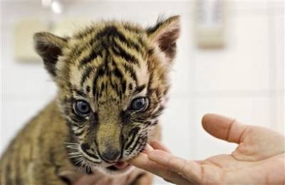 中新網(wǎng)2月26日電 以色列耶路撒冷動(dòng)物園里的一只蘇門(mén)答臘虎,兩個(gè)月前生了兩只小老虎,沒(méi)想到母老虎不但不管小老虎,還差點(diǎn)吃掉它們,最后只有一只小老虎成功活下來(lái)。動(dòng)物園獸醫(yī)無(wú)計(jì)可施,最后只好把小老虎帶回家養(yǎng),暫時(shí)充當(dāng)起虎保姆。