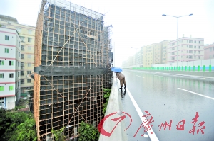 記者在附近采訪發(fā)現(xiàn),類似的高層自建房在當(dāng)?shù)胤浅F毡。如大圖這般緊貼華南路三期的就有3棟。城管有關(guān)負(fù)責(zé)人表示,執(zhí)法部門目前對此類情況“以控為主”,對違規(guī)加建的部分,將予以處罰并在下次征地拆遷時不予補(bǔ)償。他提醒市民千萬不要購買這種自建房,否則后果自負(fù)。