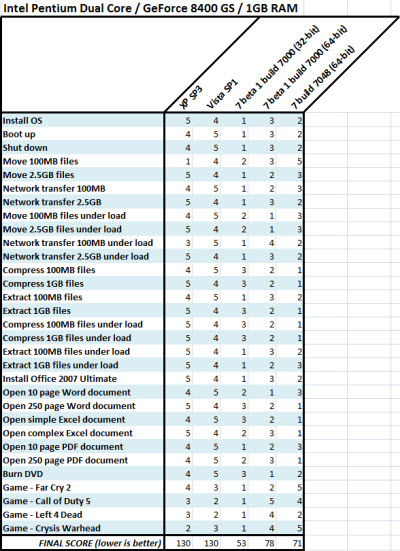 當然值得一提的是,Windows 7的評測是Beta版本,而Vista和WinXP已經(jīng)完善的升級至SP1或SP3。