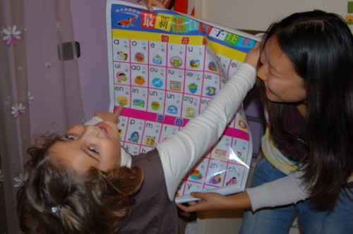 11月初我受邀來到馬爾蒂娜家里時,她正在寫作業(yè),我在門外就聽到她嘴里還叨咕著乘法口訣。她做完了作業(yè),我問她用筷子技巧是否有進步,她拉著我到廚房表演起來。為了表示對她進步的肯定和鼓勵,我送給她一本《漢語拼音趣味圖案冊》,并告訴她可以按照這些生動有趣的拼音圖案開始正式學習漢語。她手捧著禮物,深深地回送給我一個吻,這是意大利最傳統的表示問候或感謝的禮儀。