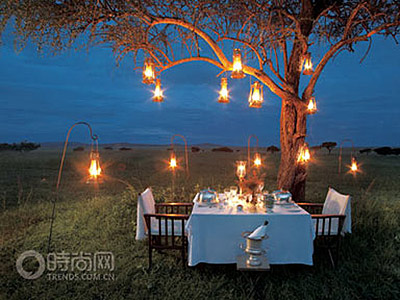 整個(gè)營(yíng)地一副上個(gè)世紀(jì)20年代走出非洲的風(fēng)情,帳篷里的裝置非常精致,甚至可以說件件都是奢侈品。晚餐席間,大家熱烈地討論了今后一周我們要做的事情,在大草原上打網(wǎng)球、騎馬旅行、溫泉SPA當(dāng)然,最重要的就是看動(dòng)物們的舉家遷移,如果山還不夠高的話,坐直升機(jī)怎么樣?我們的專機(jī)隨時(shí)聽候起飛命令。