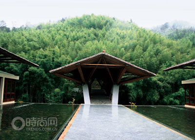 看似粗獷樸素的客家風(fēng)格的夯土,與竹子一道,形成十字水生態(tài)度假村的核心視覺(jué)景觀。度假區(qū)內(nèi)幾乎所有的建筑都有著高屋頂、青黃瓦和夯土墻,幾近落地的玻璃窗、超大的露臺(tái)、可以看到天空的浴室,所有的設(shè)計(jì)都讓住在其間的人們可以隨時(shí)與大自然“無(wú)縫連接”。令人心儀的是,客房?jī)?nèi)的配套用品也全部采用天然材質(zhì),如純絲和純棉的床上用品,竹子和木質(zhì)材料的家具,擺件也大多是陶土和石器制成的。為了最大程度地提升自然生態(tài)的視覺(jué)感受,度假村在別墅院落旁設(shè)置了眾多鏡面水池,水池中休憩著紫色的睡蓮,平整的水面將南昆山綠色的山景完整折現(xiàn),只需要在院落里支一張?zhí)梢,就可?60度完全沉醉在綠涌的林海里。