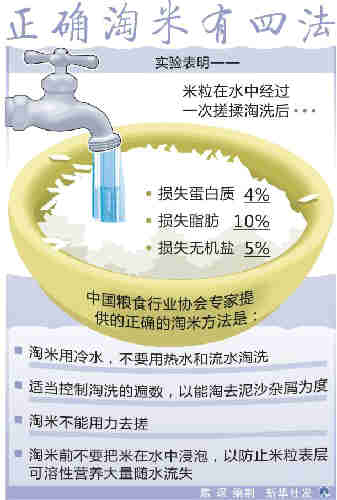 四、淘米前不要把米在水中浸泡,以防止米粒表層可溶性營養(yǎng)大量隨水流失。(朱旭東)