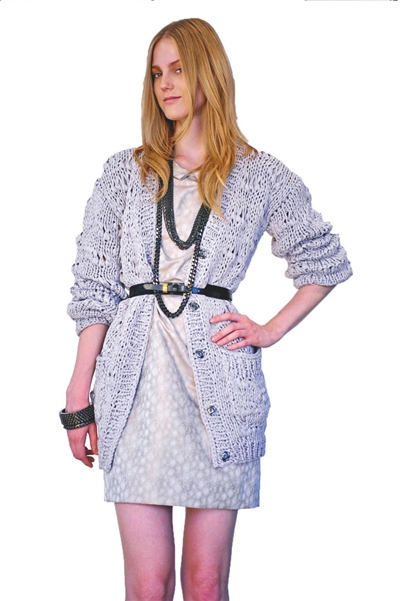 此外,將棒針針織與雪紡或起毛皮革等不同面料進行搭配,可讓針織衫呈現全新的表情。由于棒針毛衣帶給人本身已經很狂野了,所以在色彩的選擇上以黑色、茶色和紅色為主,雖說流行,但也有人一穿這種灰暗的顏色就顯得老土,怎么辦呢?這就要靠值得玩味的細節(jié)了。比如抽帶、細皮條和大紐扣……(舒志娟)