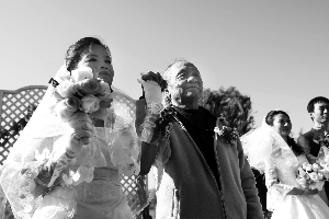 集體婚禮由一家婚戀網(wǎng)主辦,此次共有新人11對(duì),都是通過(guò)網(wǎng)絡(luò)走到一起的。吳介琴是中央美院退休教授,在新人里年齡最大,愛人蔣曉輝女士58歲,是成都鐵路系統(tǒng)退休員工。