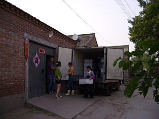 晚上六點(diǎn)鐘,趙梅(化名)準(zhǔn)時(shí)來到了位于通州區(qū)臺(tái)湖鎮(zhèn)田府村373號(hào),一輛中型貨車緩緩駛?cè)肓诉@座民房旁邊的車庫(kù),隨著后車廂門的打開,她和其他8個(gè)工人熟練搬起裝滿使用過的“餐具”的箱子,從原本緊閉的大門里進(jìn)去。