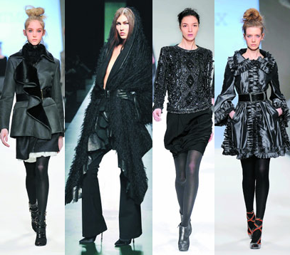 今年秋冬黑色革新趨勢(shì)是采用微妙差別的黑與黑的組合。也就是說采用一些肌理與光澤的變化,采用皮草、羽毛、絲絨、緞面等不同質(zhì)感的黑色面料的拼接,以及閃石、亮片等鑲嵌,用不同面料、不同黑色、不同光影對(duì)比來(lái)玩搭配的游戲。