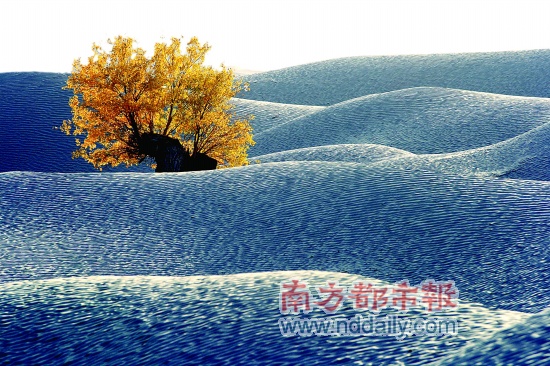 在塔里木河中游的古村草湖鄉(xiāng),沿途有著成片的原始胡楊林,樹林倒影在湖水之中,景色很迷人。林偉生以前經(jīng)常去拍胡楊林,這次來到這么個好地方,而且不是旅游景點,更加沉醉。