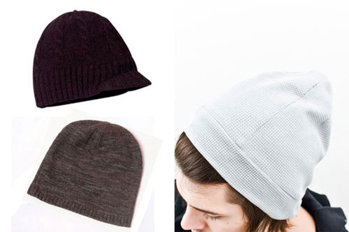 順時(shí)針, 左起: Patagonia 鴨舌小便帽, $35; Obesity and Speed 針織帽, $44; Filippa K 混紡針織帽, $89, available at Achilles.