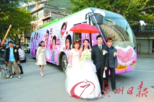 上周六,一輛裝飾十分浪漫溫馨的“幸福巴士”載著一對(duì)新人穿行在同福路、吉祥路、惠福路等廣州市區(qū)里寓意吉祥的街道,這種少見的迎親方式引來不少市民駐足觀看。