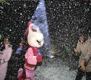 據(jù)北京歡樂谷市場(chǎng)營(yíng)銷部經(jīng)理趙強(qiáng)介紹,從昨天開始到春節(jié)期間,歡樂谷將首次啟動(dòng)人工造雪,室外溫度在0℃以下,可現(xiàn)場(chǎng)造雪,營(yíng)造雪花漫天的冰雪場(chǎng)景。同時(shí),歡樂谷在園區(qū)六大主題區(qū)域共安設(shè)了10間小型取暖屋,免費(fèi)提供給游客取暖。