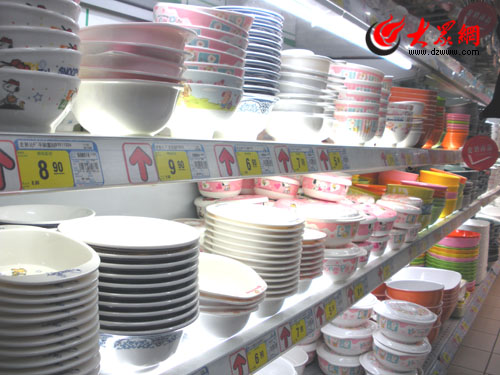 近日有報(bào)道稱,國內(nèi)部分企業(yè)使用不合格原料生產(chǎn)仿瓷餐具,給消費(fèi)者帶來潛在的健康危害。今天,本網(wǎng)記者對(duì)濟(jì)南的幾家超市進(jìn)行暗訪,發(fā)現(xiàn)仿瓷餐具仍在市場(chǎng)上進(jìn)行銷售。