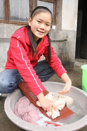 “這點(diǎn)困難算不了什么,美好的明天在向我招手!”近日,當(dāng)記者在長(zhǎng)沙縣安沙鎮(zhèn)龍華新村見(jiàn)到“感動(dòng)長(zhǎng)沙十佳少年”葉果時(shí),她正冒著寒冬的細(xì)雨,蹲在田邊為父親洗衣服。一雙小手已經(jīng)被凍得紅腫,她卻對(duì)記者報(bào)以燦爛的微笑。