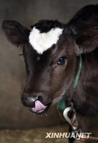 這頭被主人親切地稱(chēng)為“小心”的奶牛上月25日降生于藤澤市私營(yíng)的山君農(nóng)場(chǎng)。小家伙一身棕色體毛,唯獨(dú)額頭的心形圖案是純白色,恰好與牛年情人節(jié)的浪漫氣氛相吻合。經(jīng)當(dāng)?shù)剞r(nóng)協(xié)爆料后,小牛犢迅速躥紅,吸引了海內(nèi)外眾多媒體的關(guān)注。如今面對(duì)記者,它已經(jīng)能溫順地配合主人擺出各種姿勢(shì),頗具“明星”風(fēng)范。