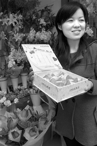 不過(guò),在成都財(cái)富中心某公司工作的王宏新在訂下一束花后,當(dāng)即向老板詢問(wèn)是否可以訂貨,還對(duì)老板的這個(gè)創(chuàng)意大加贊賞,并提出了自己的一些改進(jìn)觀點(diǎn)。他說(shuō),其實(shí),情人節(jié),大家過(guò)的就是一個(gè)情調(diào),只要看起來(lái)不錯(cuò),女朋友喜歡,買一份倒也是可以的!澳昴晁兔倒濉⑶煽肆,今年來(lái)點(diǎn)新鮮的,送盒草莓,也許更討人喜歡!币幌,引來(lái)眾人大笑。