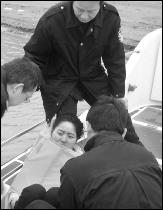 獲救女子上船后奄奄一息,口吐鮮血,不能說(shuō)話,民警用艇上的干衣服給她取暖。巡邏艇馬上駛向最近的大橋邊,鄂州市120醫(yī)護(hù)人員已在碼頭等候,女子被送往鄂州市中心醫(yī)院搶救。警方隨后擴(kuò)大搜尋到長(zhǎng)江下游7000米遠(yuǎn)的浠水巴河水域,沒(méi)有找到失蹤的男子。