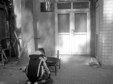 昨日春光燦爛,肖林親友們卻沒(méi)心情享受美景,他們齊齊來(lái)到烈士陵園等待法醫(yī)鑒定的結(jié)果。法醫(yī)鑒定工作室門(mén)外,燃著兩根紅燭,擺了臺(tái)供燒紙錢(qián)的鐵鍋,一名身著運(yùn)動(dòng)服的少年朝屋里躬身行禮,然后長(zhǎng)跪在草墊上淚流滿(mǎn)面。他是肖林的兒子肖理,年僅15歲。僅在一夜之間,他就不得不面對(duì)突然失去父親的現(xiàn)實(shí)。
