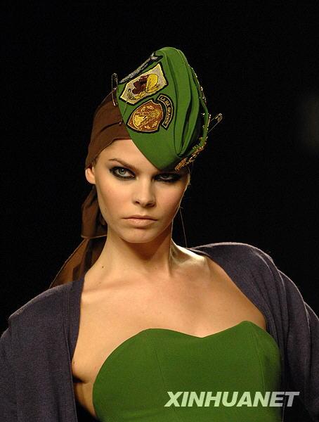 2月24日,在西班牙首都馬德里舉行的時裝周上,模特在展示設(shè)計師的時裝作品。新華社記者陳海通攝