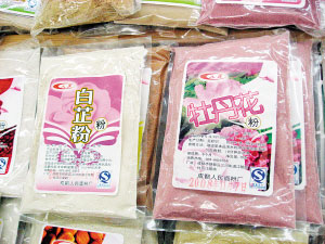 些敷臉的粉末不在護膚品分類中出現(xiàn),而是在超市的面粉區(qū)域銷售,也有近百種之多,將水果、蔬菜以及堅果的提取物同面粉結(jié)合,這樣的粉可以用溫水調(diào)和,用小火或微波爐煮制食用,也可以加蛋清或蜂蜜敷臉,其實喜歡DIY面膜的女士們一定知道,用蛋黃混合面粉而成的面膜薄薄地涂在臉上,可滋潤皮膚。只不過現(xiàn)在我們食用的面粉可以用這些特殊的面粉代替了,會有更多的功效在里面,比如美白、抗敏、排毒等功效?蛇x擇的有杏仁粉、枸杞粉、玫瑰花粉、苦瓜粉、淮山粉、薏仁粉、檸檬粉、蘆薈粉、白芷粉、紅豆粉、綠豆粉、杜鵑花粉、黑木耳粉、荷葉粉等等。70克一小袋兒要花費近17元,顯然敷臉比食用更劃算些。(文/攝 孫小雅)
