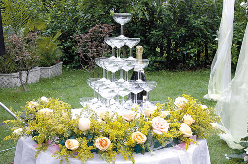 觀禮場旁邊,例牌要準備一些簡單的餐點供親友們享用。至于浪漫的泡泡機、現(xiàn)場演奏的小樂隊,就可以視乎新人們的需要來添加或者忽略。