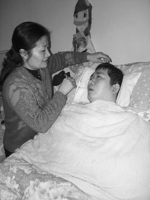 吳磊的昏迷狀況一直持續(xù)到現(xiàn)在,昨天,當(dāng)《生活常州》來到孟湘芳家中時,吳磊仍躺在床上,除了眼睛會睜開,頭會轉(zhuǎn)動外,吳磊的手腳依然僵硬萎縮,其實仍然是一個無意識無語言的植物人。