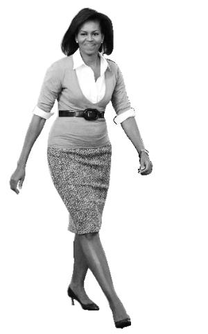 米歇爾的形象每天都有變化,這讓她與喜歡褲裝套服的勞拉·布什和希拉里·克林頓形成鮮明對(duì)比。米歇爾會(huì)重復(fù)穿同樣的衣服,不過(guò)會(huì)配上新飾品,這也是普通女性的做法。