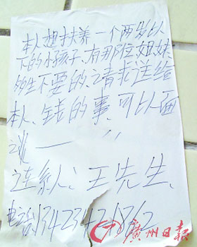 昨日下午,在深圳光明新區(qū)公明辦事處上村社區(qū),記者竟然在一棟樓的墻壁上看見一張買小孩的廣告(見左圖)。這是一張用圓珠筆寫成的廣告,署名為王先生的人稱自己想收養(yǎng)一個兩歲以下的孩子,請有多生孩子的姐妹送給自己一個,價錢可以面談。按照廣告上留的電話,記者撥打過去。接電話的女子稱自己和老公結(jié)婚多年未孕,想收養(yǎng)一個孩子,只好寫了小廣告貼在墻上,希望找到合適的孩子。民政部門的負(fù)責(zé)人表示,這種街頭廣告收養(yǎng)小孩的方式顯然是不合法的,并提醒市民千萬不要上當(dāng)受騙。(記者 阮曉光攝)