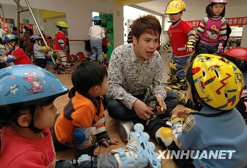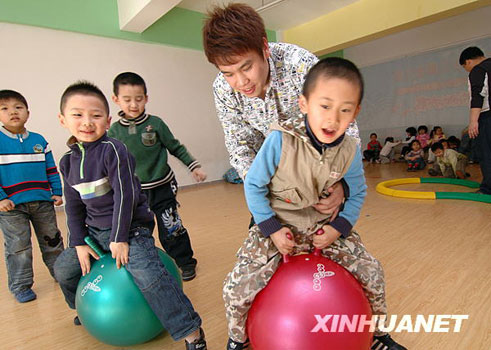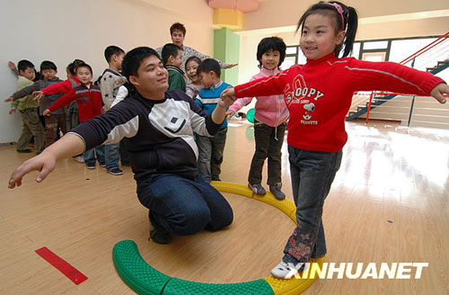 2008年畢業(yè)于遼寧省師范大學(xué)的兩位男大學(xué)生趙雷與王健應(yīng)聘到錦州市一家民辦幼兒園任幼兒教師,他們的到來為幼兒園帶來了新的教育理念,增添了堅毅陽剛之氣,受到孩子們的喜愛,兩位“男阿姨”也漸漸地愛上了這個職業(yè)。(李鐵成 攝)