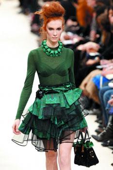 其實(shí)八十年代也好,六十年代也好,那些浮華奢糜的年代已經(jīng)離我們很遠(yuǎn),我們只能在衣服里懷湎。而金融危機(jī)未曾離開已經(jīng)被問及第二波。所以在這個(gè)時(shí)候發(fā)布的巴黎時(shí)裝周,自然敏感而地著絲絲的悲哀。被一眾看好的Balmain,可以觀望到這個(gè)秋冬被視作女性權(quán)力象征的肩墊,非但沒有收斂之勢,更猶如中國古建筑的飛檐般往上翹。但最震懾人心的還是年年有驚喜的Prada,在一片肅殺之意下,冷調(diào)里的彩被看作重生的希望,設(shè)計(jì)師的靈感來自城郊那片霧色,但最后成就了所有人內(nèi)心被燃起的希望之光。而依舊快樂的Louis Vuitton,而最美的還是Balenciaga,還是觀望下半年經(jīng)濟(jì)如何,我們選擇低調(diào)還是奢華吧。(九姑娘)