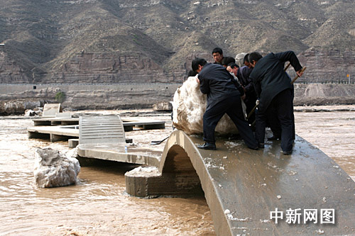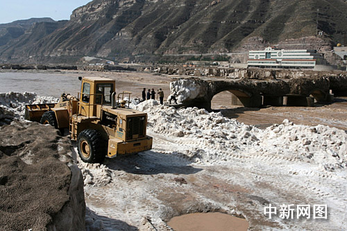 為早日使景區(qū)開放,在一年一度桃花訊來臨后,河道的冰塊被洪水沖刷的所剩無幾,加之天氣漸漸變暖,使景區(qū)道路冰塊融化,壺口管委會決定采取機械與人工清理冰塊的辦法,及時組織景區(qū)干部職工和景區(qū)群眾配合機械對冰塊進行清理。