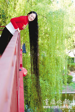 來(lái)自云陽(yáng)縣青龍路 云陽(yáng)縣的程世瓊女士蓄發(fā)16年,頭發(fā)長(zhǎng)達(dá)2.5米。為保持頭發(fā)的烏黑光澤,每次洗頭,程世瓊都用自己獨(dú)制的秘方。