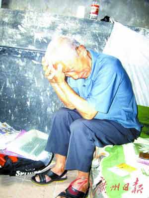 劉老漢從不睡旅館,“就因?yàn)樘F了,最便宜也要15元。”累了就在路邊找個(gè)有屋檐的地方靠墻睡。