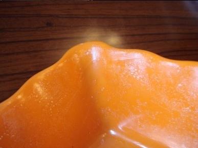 質(zhì)量差的仿瓷杯,經(jīng)蒸煮后變色、開(kāi)裂。
