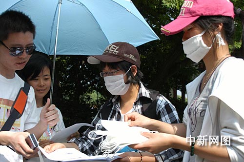 中新網(wǎng)杭州5月4日電(記者 江耘 通訊員 陳國(guó)利) “您好,這是我們印制的宣傳冊(cè),介紹了日常生活中預(yù)防甲型H1N1的方法,我們還給您準(zhǔn)備了口罩。如果您覺得需要,就麻煩您戴上它!苯裉煜挛2點(diǎn)多,游客羅先生與夫人正在西湖邊散步,迎面碰上兩位帶著口罩的大學(xué)生。