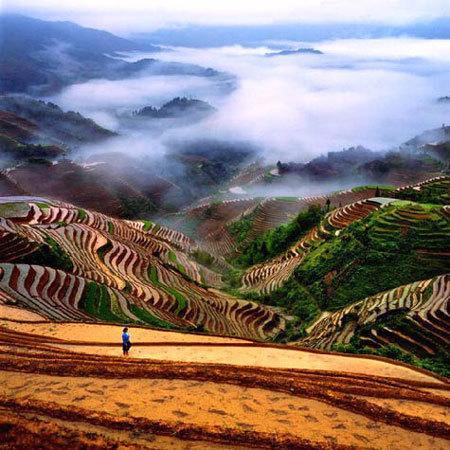 梯田的規(guī)模磅礴壯觀、氣勢(shì)恢宏,線條行云流水、瀟灑流暢,為天下梯田所望塵莫及;雖說(shuō)南國(guó)山區(qū)處處有梯田,可是像龍脊梯田這樣大規(guī)模的集中實(shí)屬罕見(jiàn)。從流水湍急的河谷,到白云繚繞的山巔,從萬(wàn)木蔥蘢的林邊到石壁陡崖前,凡有泥土的地方,都開(kāi)辟了梯田。垂直高度達(dá)五六里,橫向伸延五六里,那起伏的、高聳入云的山,蜿蜓的如同一級(jí)級(jí)登上藍(lán)天的天梯,像天與地之間一幅幅巨大的抽象畫(huà)……每位看見(jiàn)這一景色的游客,心靈也都會(huì)被深深地震撼!這是一種難以言表的,一種被大自然的雄奇以及人的偉力所引起的震撼!