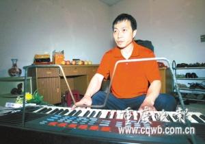簡(jiǎn)廣榮想起女兒,就胡亂地敲擊電子琴。 記者 張質(zhì) 攝