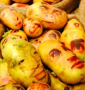 黎巴嫩藝術家Ginou Choueiri在個人博客上推出土豆肖像藝術,利用土豆外皮的天然紋理、顏色繪出各式人等的面部表情。