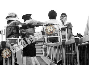 上午11時15分,男子終于被勸服,并由云梯接下,隨后被警方帶走調查。 (記者 熊栩帆)