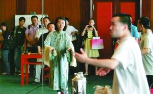昨日,國家京劇院的排練館里,6名演員在參觀者面前認(rèn)真對戲。隔壁,一名女演員“表演”著化妝、穿戴,準(zhǔn)備唱一出“天女散花”,這些幕后工作平時并不對外開放。