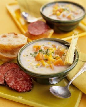 湯類非常有益健康,而且價(jià)格低廉、易于制作?墒,罐裝濃湯是由鹽、脂肪、人造添加劑、防腐劑,或許還有一些脫水胡蘿卜調(diào)制成的營養(yǎng)價(jià)值非常低的“混合物”。一罐濃湯含1000毫克鈉,大約是你每天所需量的一半。因此,還是自己準(zhǔn)備雞肉、牛骨和蔬菜,親手做一碗熱騰騰、香噴噴的湯吧。