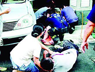 臺中縣烏日鄉(xiāng)王姓婦人跳樓輕生,壓傷在樓下用手接的丈夫