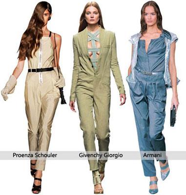 傘兵的制服——連體衣(Jumpsuits),已不僅僅是跳傘時(shí)的裝束,這季它成為潮流必備。除了鋪滿(mǎn)女性化的印花,西裝式的剪裁也迎合而上。設(shè)計(jì)師要讓你知道連體衣也能千變?nèi)f化。如果愛(ài)時(shí)髦,那就穿一條連體衣吧!